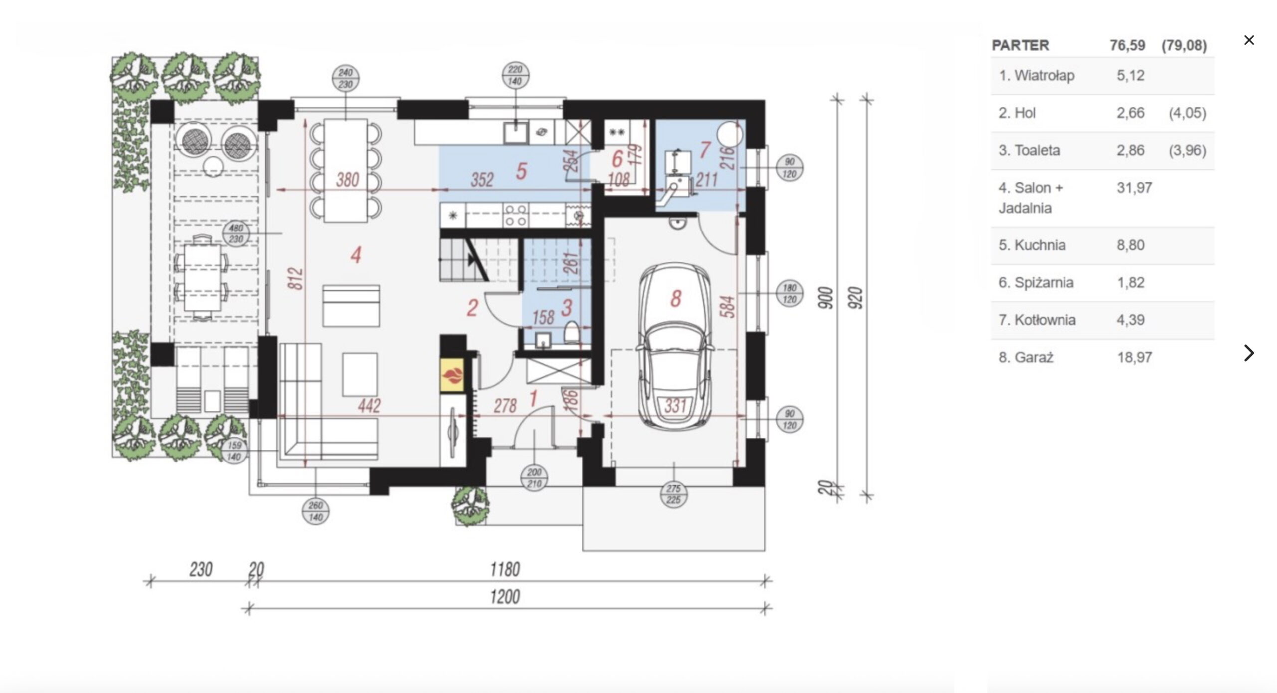 - Garaż: 18,97 m2