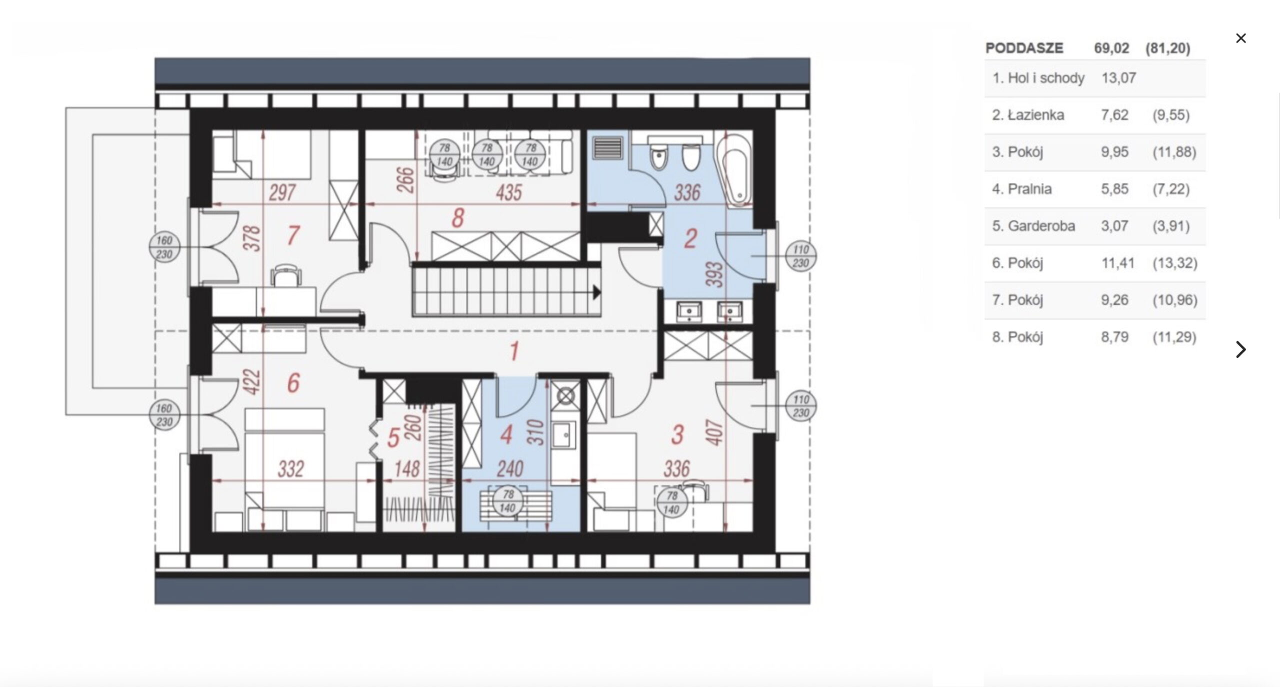 - Kuchnia: 8,80 m2