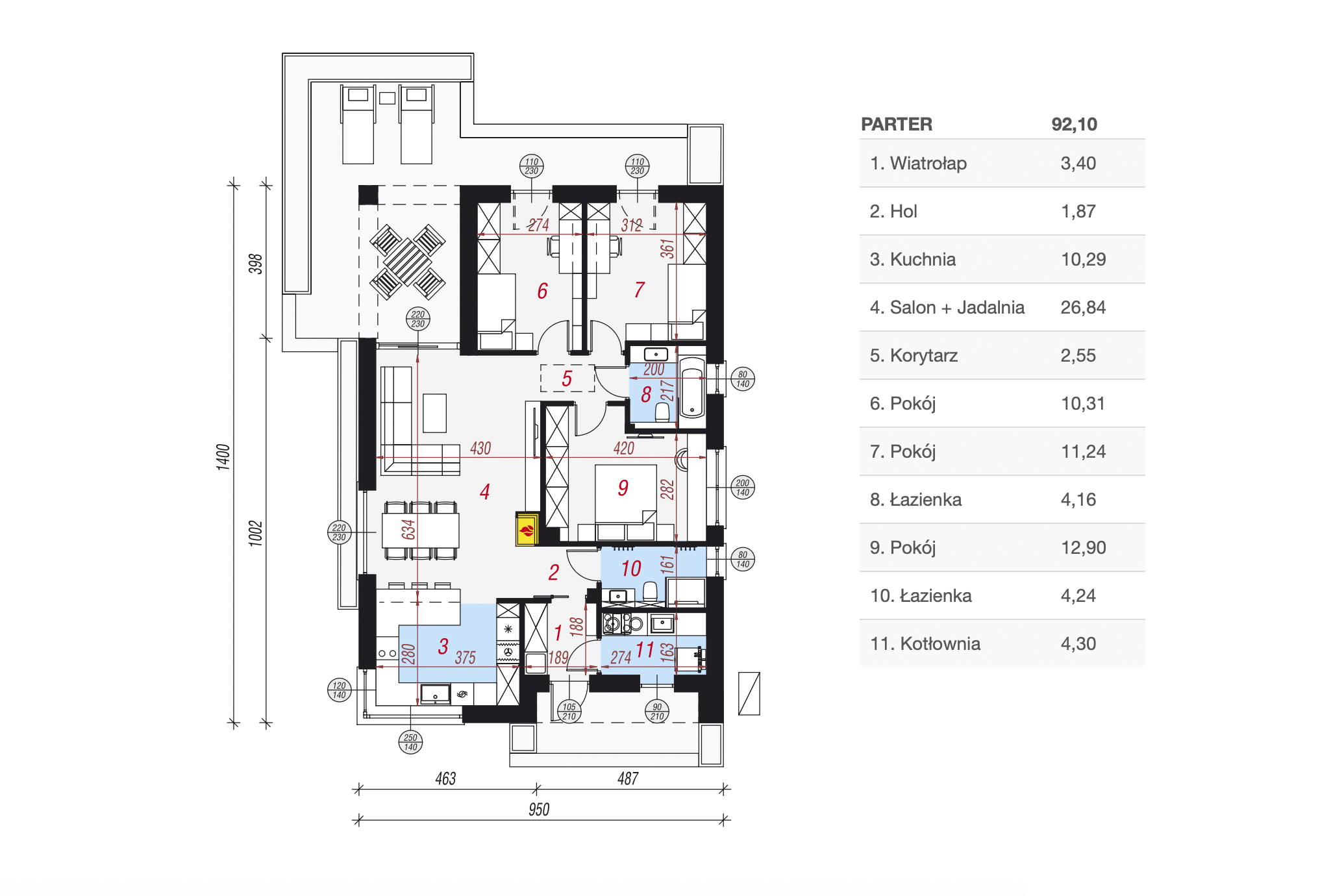 parter o łącznej powierzchni 92,10m²: