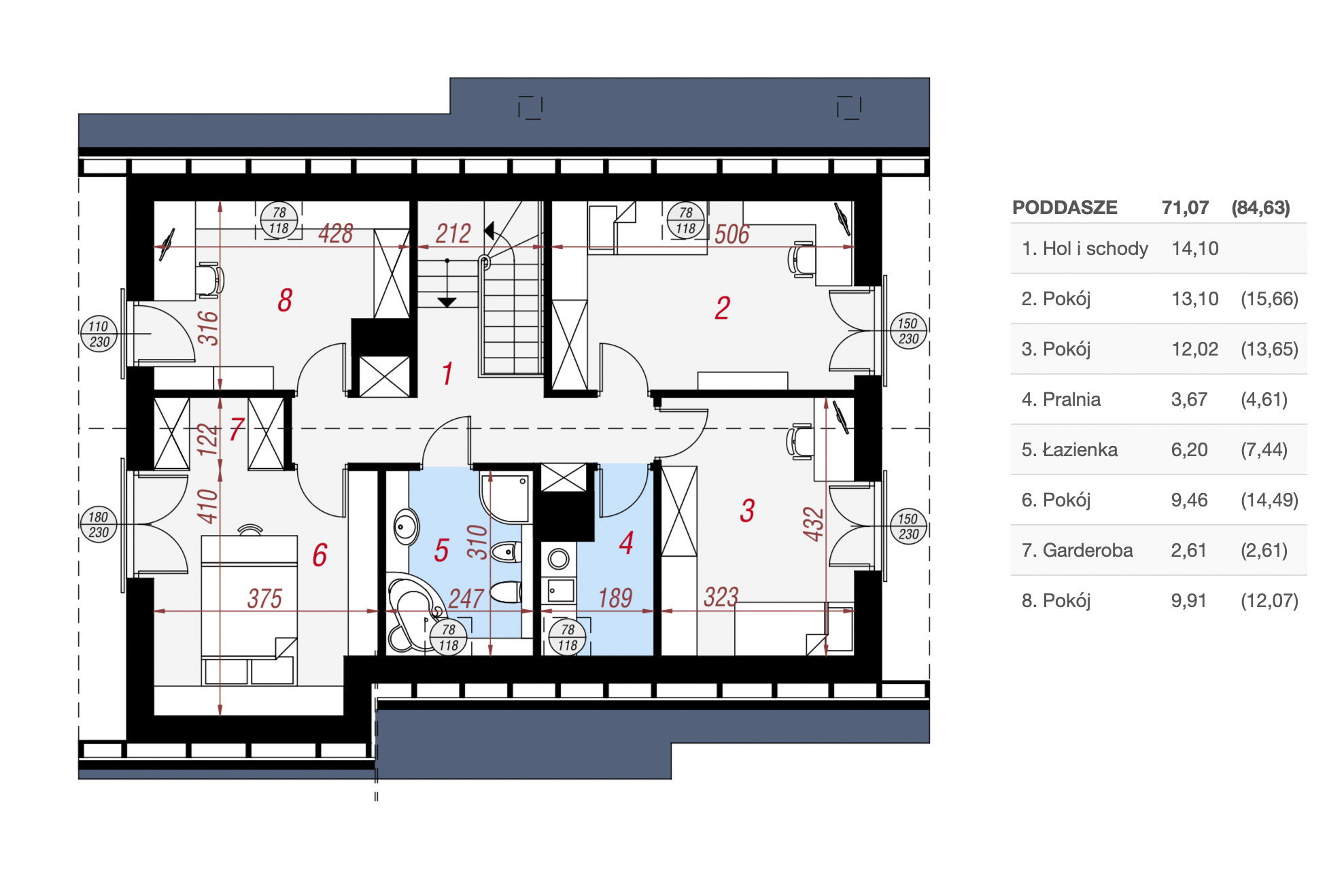 Poddasze o powierzchni 71,07 m² (84,63):
