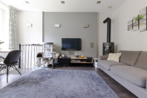 - ogrzewanie podłogowe (aneks kuchenny, przedpokój, łazienka),